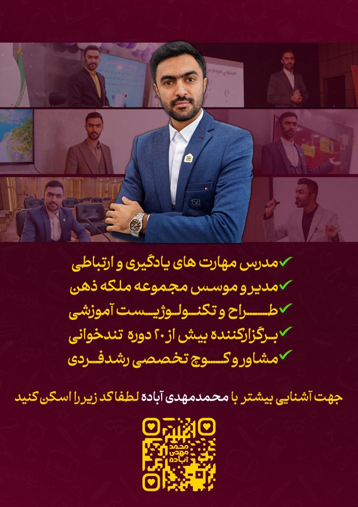 محمدمهدی آباده مدرس مهارت های یادگیری و ارتباطی & مدرس روش های نوین مطالعه و تندخوانی & مدیر و موسس مجموعه آموزشی ملکه ذهن
